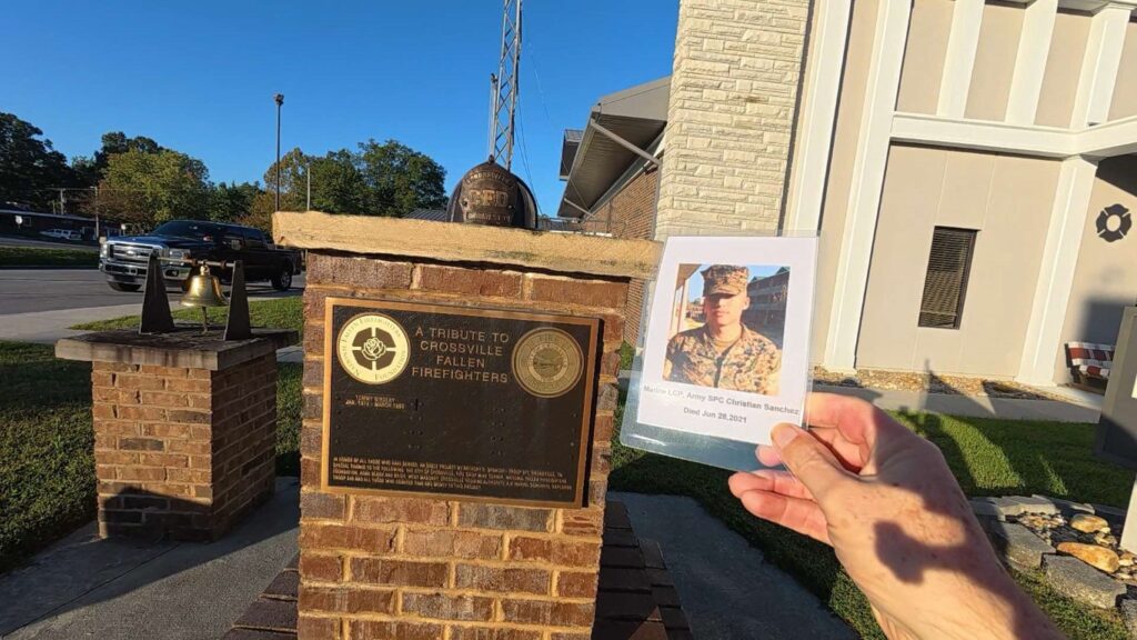 It was a great honor to walk 5.74 Miles with Marine LCPL, Army SPC Christian Sanchez. As we headed East on Sparta Hwy we watched the sun coming up. We took West Ave and headed towards town. We walked by the Fire Station and then made our way over to Main Street. We made a stop in the Veterans Memorial Park and read some names of our Fallen Brothers up on the Memorial Wall. We then made our way to the Train Depot and then continued North. We made a stop at Tractor Supply at the booth for MS Senior Cumberland County Veterans Food Drive and donated some money. Got some photos and got to visit with a couple of great friends. We then continued back down Sparta Hwy and headed home. I want to thank everyone who honked, waved, and saluted in helping me honor this hero. We had 209 honks. It was amazing. I also want to thank Army SPC Jordan Neal for helping us honor this hero. It was amazing.