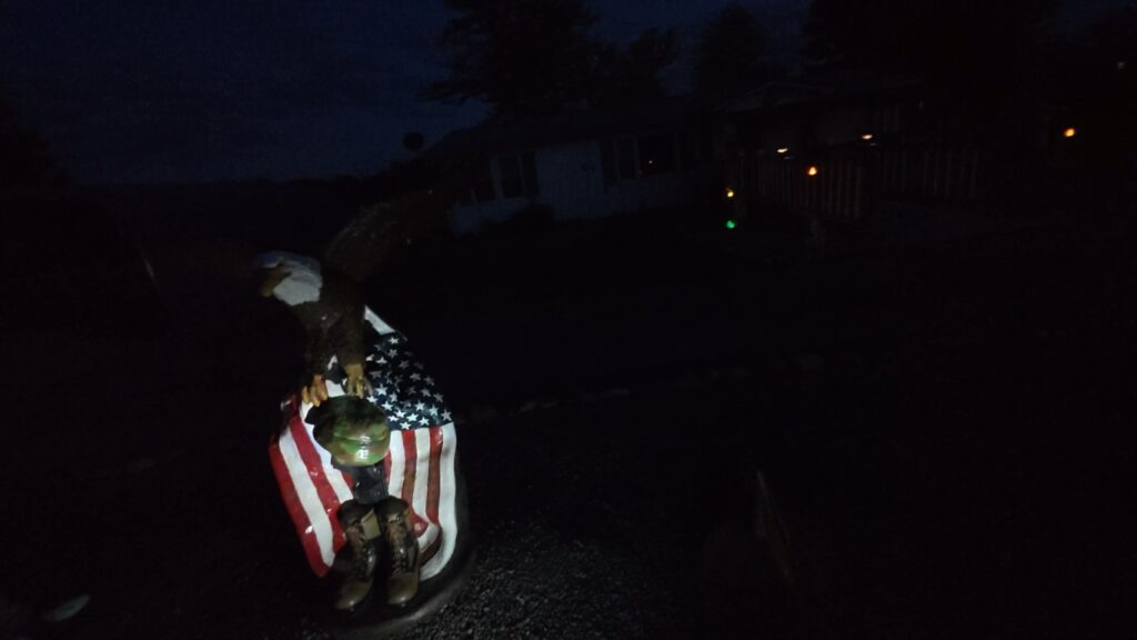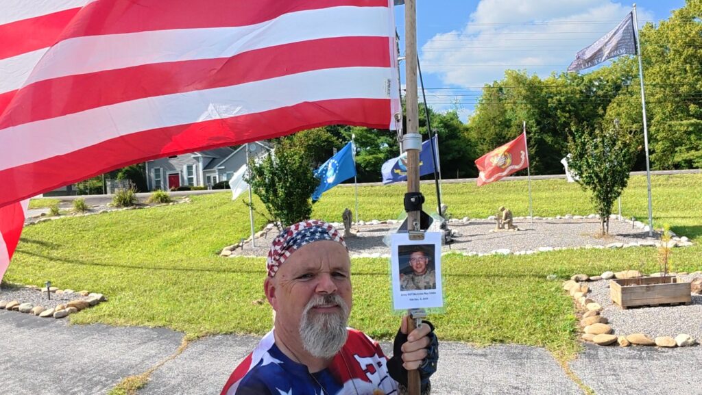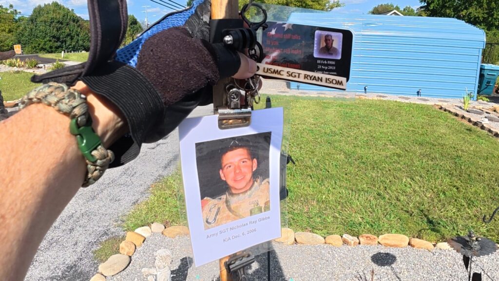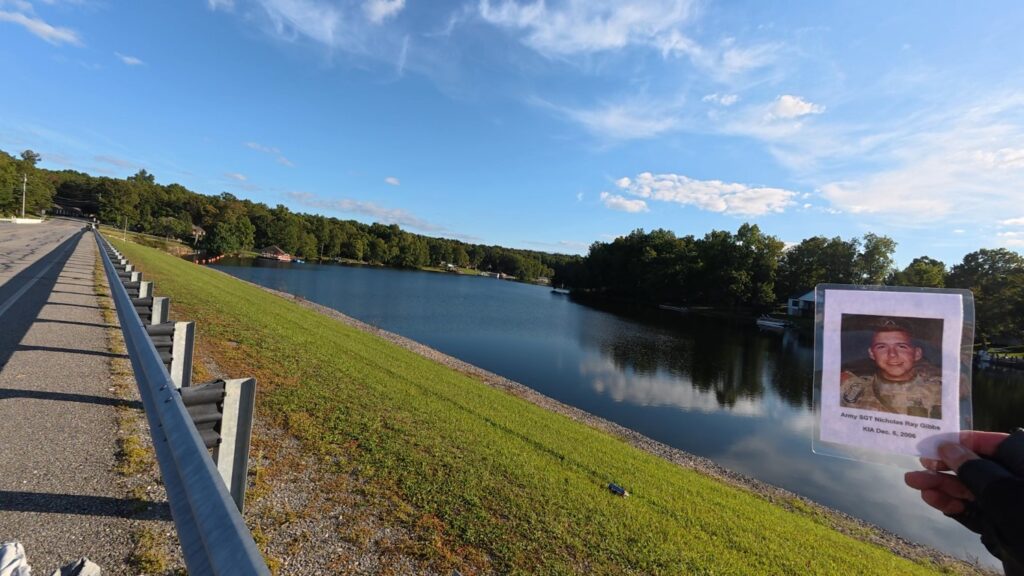 It was a great honor to walk 6 miles with Army SGT Nicholas Ray Gibbs. We walked by Holiday Hills Lake and then made our way to town. We walked by the Military Museum and then made a stop in at the Veterans Memorial Park. We read some names on the memorial wall of our Fallen Brothers. We walked around the park a little and then headed north. The sky was beautiful as the sun was going down. It had turned dark by the time we made it home. The weather was perfect. I want to thank everyone who honked, waved, and saluted in helping me honor this hero. We had 190 honks. It was amazing. I also want to thank Marine SGT Ryan Isom for joining us on our walk today and helping us honor this hero.