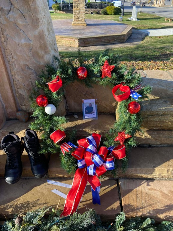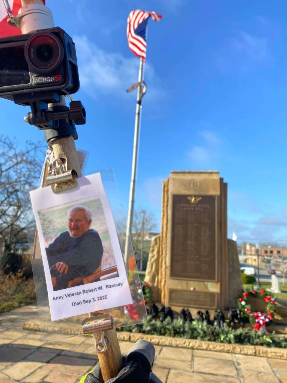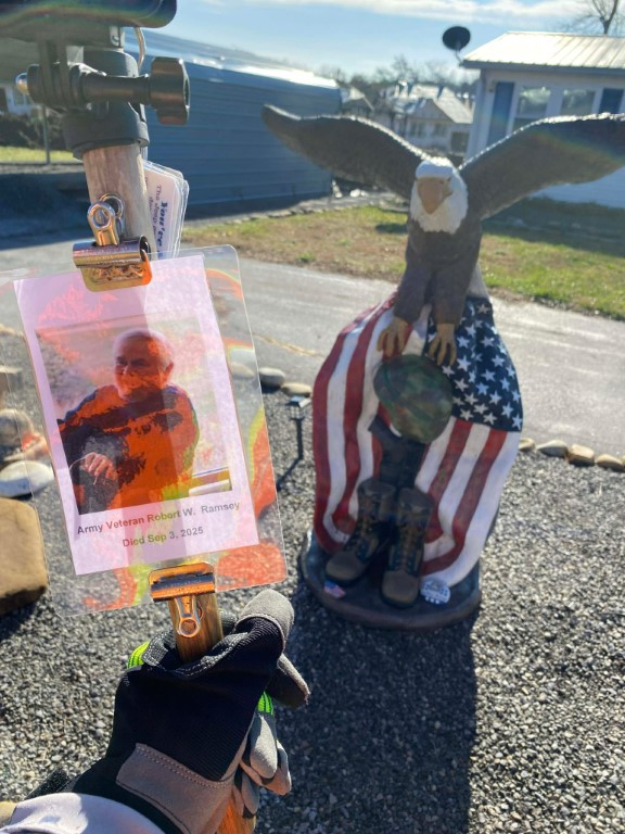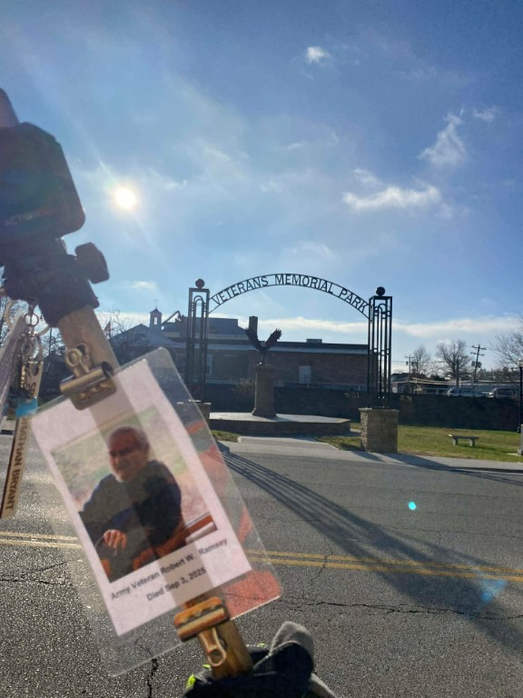 It was a great honor to walk 6 miles with Army Veteran Robert Wayne Ramsey. It was about 30 deg. when we headed out the door this morning. We headed east and walked to 127 and headed south. Our first stop was the Veterans Memorial Park. We read some names on the Memorial Wall and walked around the park and visisited each Memorial. We also found a flag painted rock while we were their. So beautiful. We then continued south till we reached Lantana and then we crossed over and headed west. We walked by Garrison Park and took Miller Ave back to West Ave and headed back to the house. We had a great walk. I want to thank everyone who honked, waved, and saluted in helping me honor this hero today. We had 310 honks. It was amazing. I also want to thank Army SPC Jonathan Bryant for helping us honor this hero today. It was amazing.