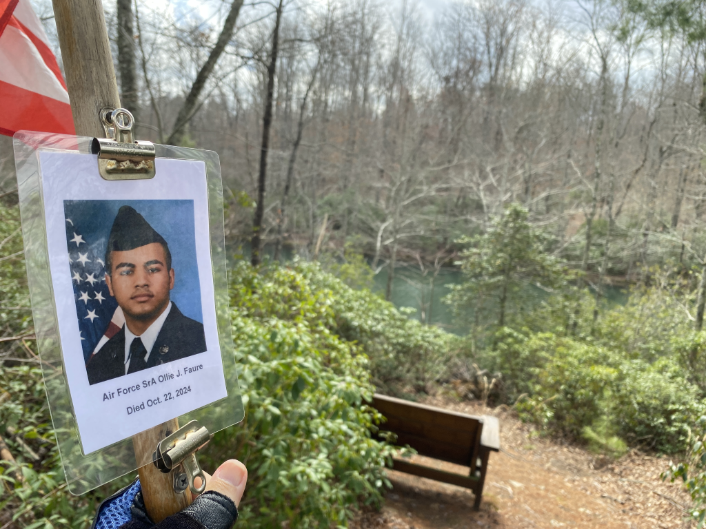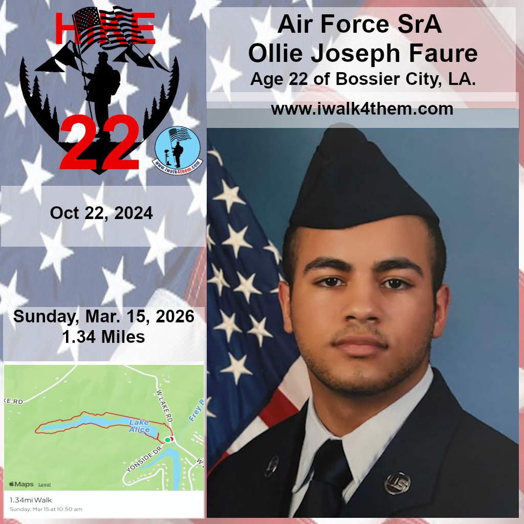 It was a great honor to hike 1.34 miles with Air Force SrA Ollie Joseph Faure. Today we hiked the Uplands Lake Alice Trail in Pleasant Hill, TN. Very beautiful lake. As you can see by the map the trail went around the lake and the views were amazing. Their were a few bridges to cross and even a rock bridge. What a beautiful day we had for this hike. I want to thank Candy for joining us and helping us honor this hero. I also want to thank these heroes for joining us and helping us honor this hero.