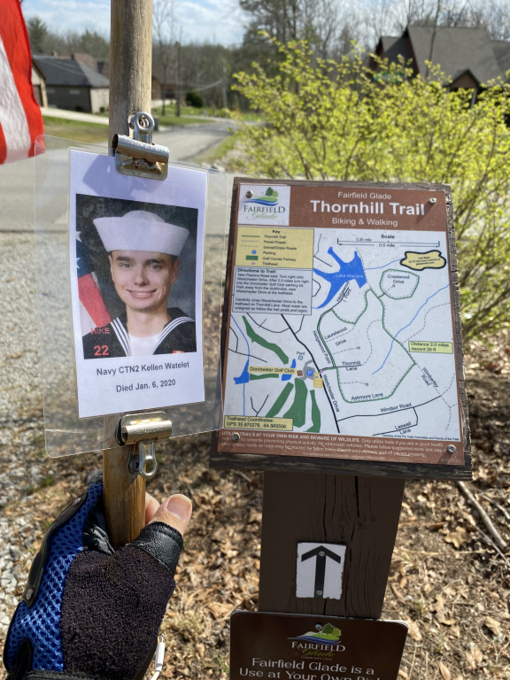 It was a great honor to hike 2.14 Miles on the Thornhill Trail in Fairfield Glade, TN. today. The weather was perfect. We got to see a lake and a lot of woods. I had never done this trail before so it was a new one. I want to thank Donna and Candy for helping us honor this hero today. I also want to thank these other heroes for helping us honor this hero today. It was amazing.