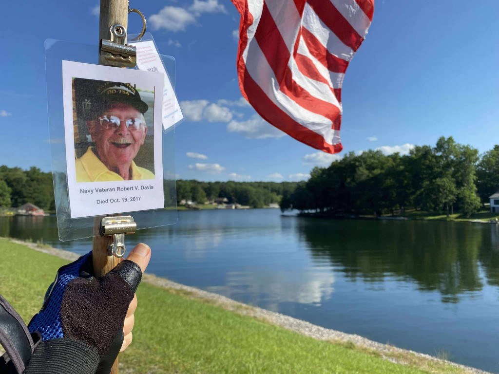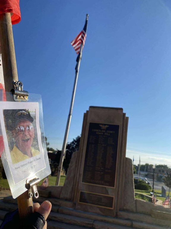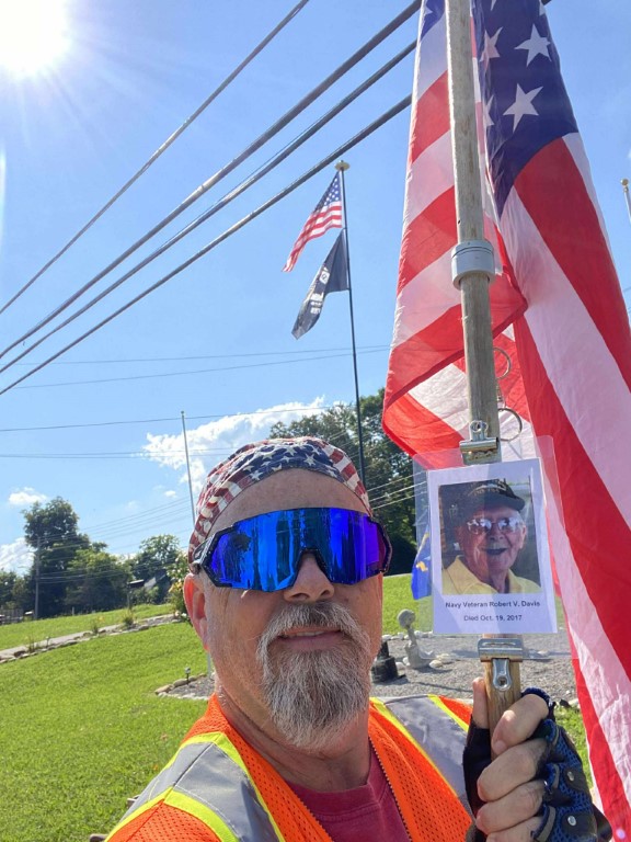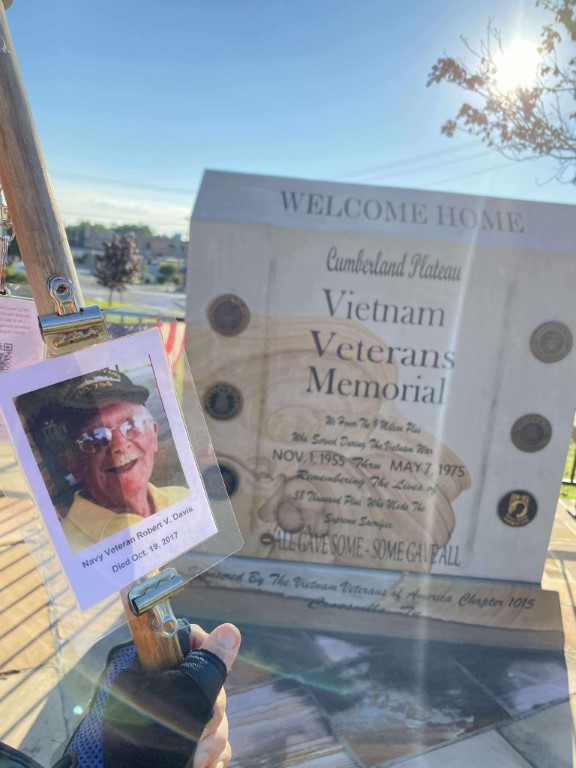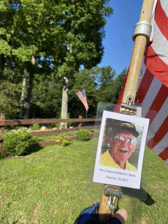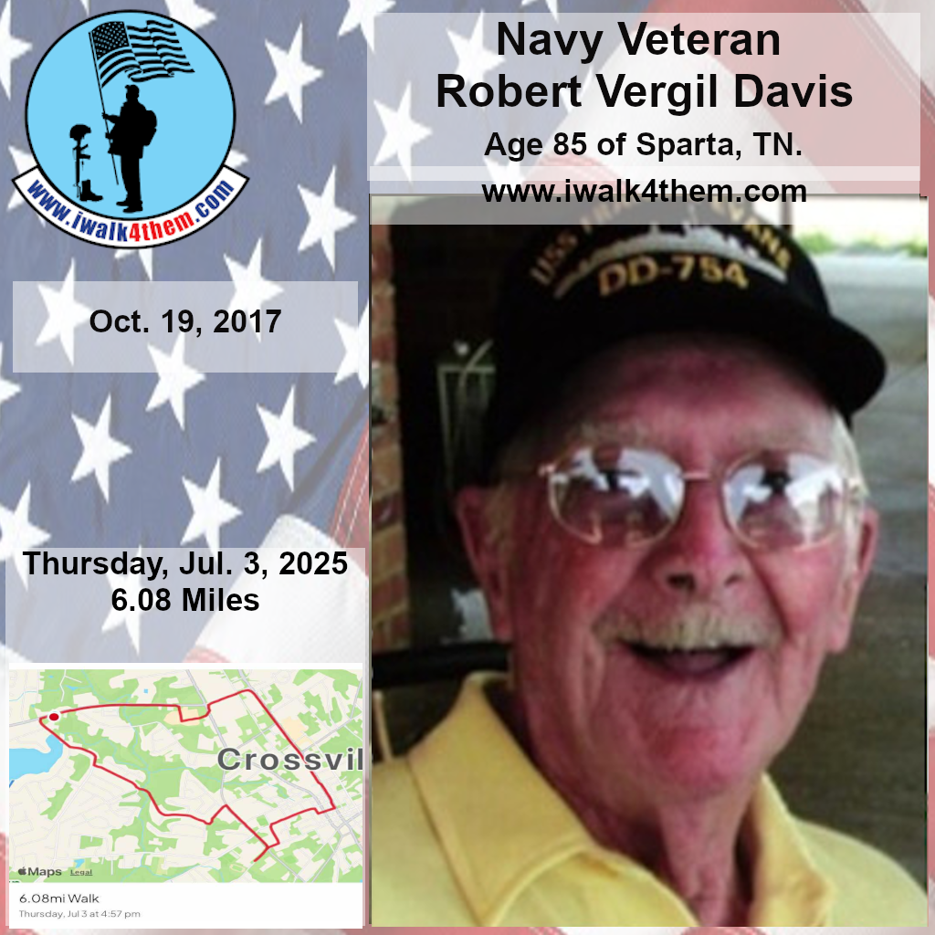 It was a great honor to walk 6.08 miles with Navy Veteran Robert Vergil Davis, We walked by Holiday Hills Lake and then we made a stop at the CCHS to see the Navy Blue Angels Jet. We then walked up town and stopped in at the Veterans Memorial Park where we read some names of our Fallen Brothers on the Memorial Wall. We then headed back towards the house. We had a great walk. I want to thank everyone who honked, waved, and saluted in helping us honor this hero today. We had 357 honks. It was amazing. I also want to thank SGT James L. Wilson Jr for helping us honor this hero today.