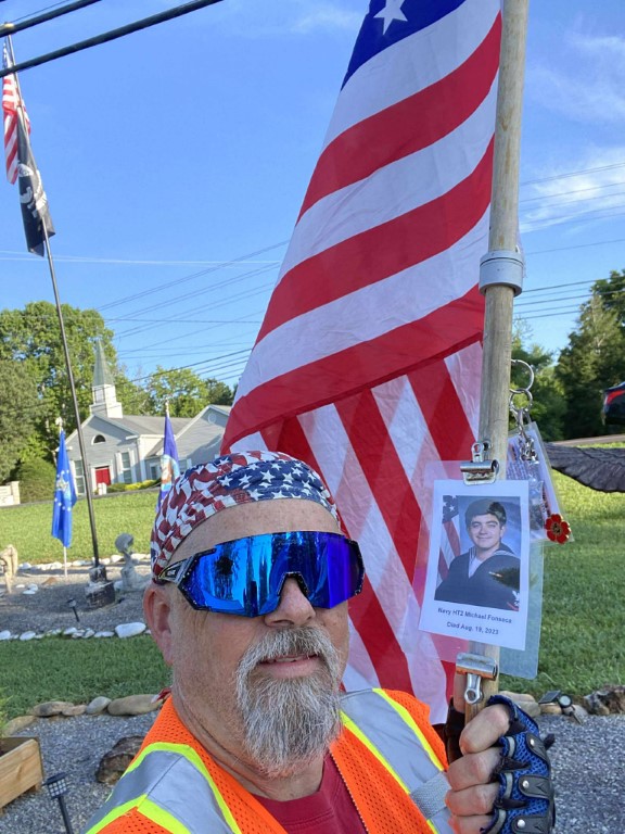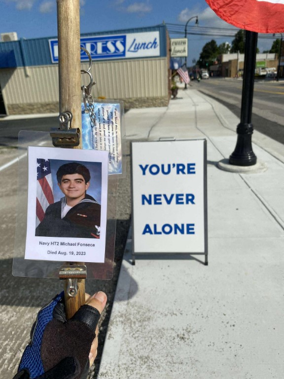 Buy Soma Overnighthttps://www.taprackholsters.com/contact/ It was a great honor to walk 6.20 miles with Navy HT2 Michael Fonseca. We walked by Holiday Hills Lake. The water looked so beautiful. On our way to the high school we ran into Elizabeth out running. She stopped a moment to help me honor this hero. We then continued to the high school to take a few photo’s of the Blue Angel Navy Jet. We then worked our way up town to the Veterans Memorial Park where we read several names of our Fallen Heroes up on the Memorial Wall. We spent some time in silence in honor of our Fallen Heroes and then we continued back north and turned at the Bakery and headed back toward the house. I want to thank everyone who honked, waved, and saluted in helping me honor this hero. We had 263 honks. I also want to thank Army Veteran Codey Donahue for joining us on our walk to help honor this hero. We will never forget !