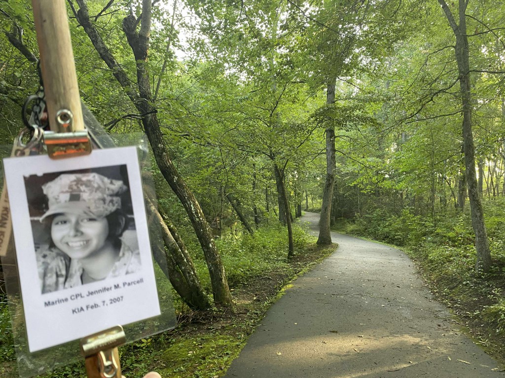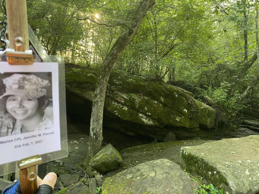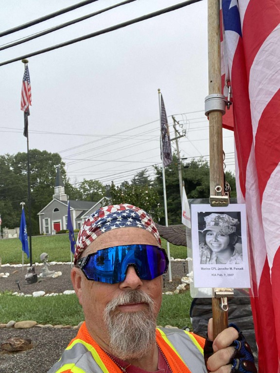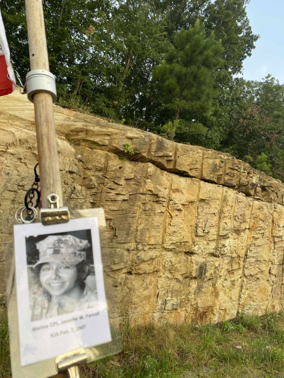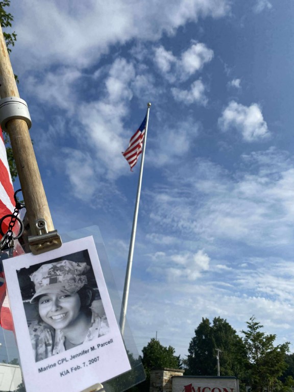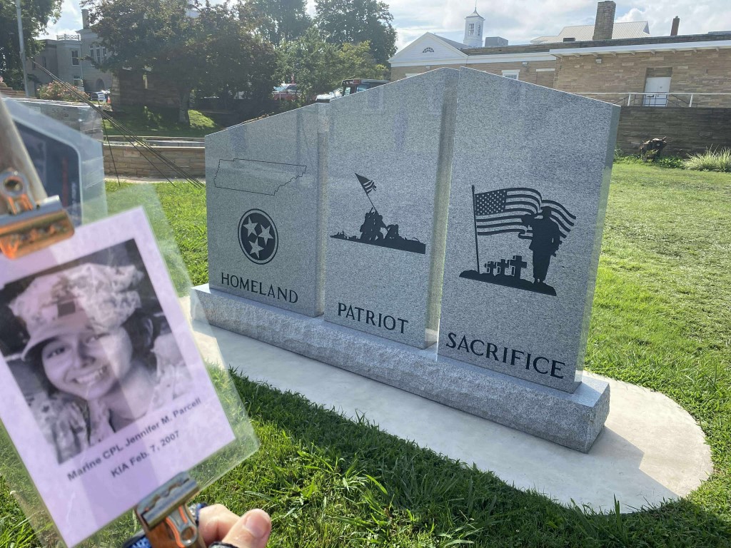 It was a great honor to walk 11 miles with Marine CPL Jennifer M. Parcell. We walked out on Northside Drive and worked our way over to the Obed River Park. It was nice walking by the water and feeling the breeze. We came out on 127 and worked our way over to the Crossville Centennial Park and enjoyed our walk through the park. We came back out to 127 and headed towards town. Our next stop was the Veterans Memorial Park where we read several names of our fallen brothers and the Memorial Wall. We then took West Ave and headed back towards the house. I want to thank everyone who honked, waved, and saluted in helping me honor this hero. We had 428 honks. It was amazing. I also want to thank Marine SGT Ryan Isom for joining us on our walk and helping us honor this hero.